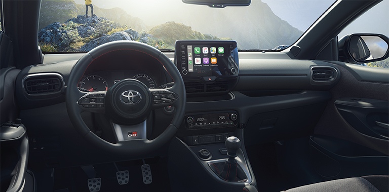 Seul bémol, l’intérieur. Il se veut particulièrement austère pour un véhicule si sportif. Si la qualité des matériaux et des assemblages est d’un niveau correct, la présentation manque cruellement de sportivité. Seuls quelques surpiqûres, l’inscription GR sur le volant, les sièges baquets, la sellerie cuir-alcantara et le pédalier alu différencient la GR d’une classique Yaris Hybride. Dommage.
