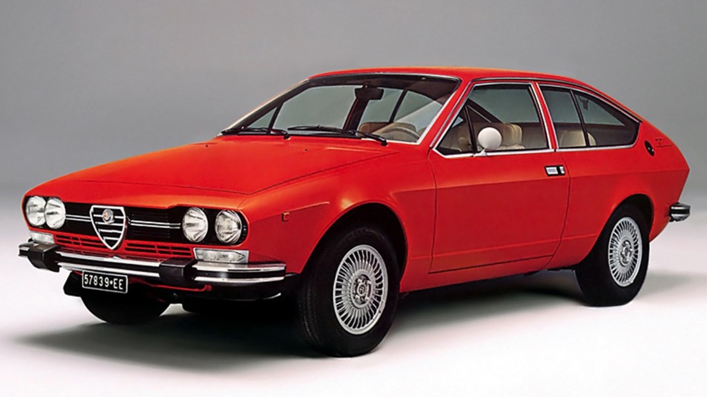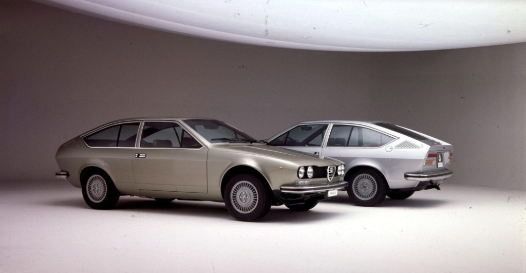 Dès 1974, Alfa Romeo sortira le coupé Alfetta GT, à la fois macif, élancé et aérodynamique avec un CX de seulement 0,39. Ce coupé doit ici encore son design original aux lignes tendues à Giorgetto Giugiaro.