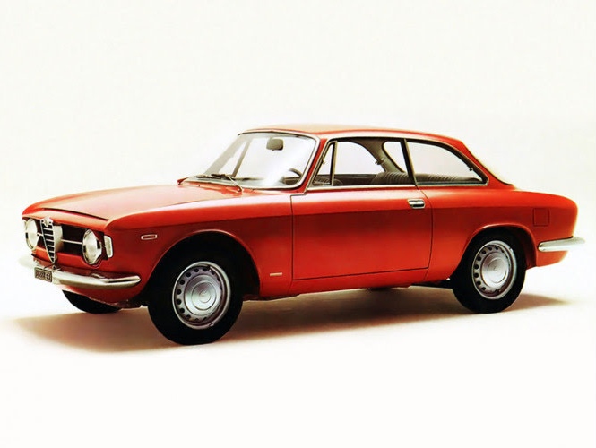 En 1963, Alfa Romeo lance la Giulia GT, version coupé de la berline Giulia sortie en 1962. Il s’agit du premier modèle produit dans la célèbre usine d’Arese. Doté d’un bloc de 1570 cm3 de 103 ch alimenté par deux carburateurs double corps Weber, le premier de la lignée des coupés « type 105 » trouve immédiatement son public. On doit sa ligne à la fois tendue et fluide au coup de crayon du jeune Giorgetto Giugiaro âgé de 22 ans seulement, alors salarié du maître Bertone, d’où le surnom de « Coupé Bertone. »