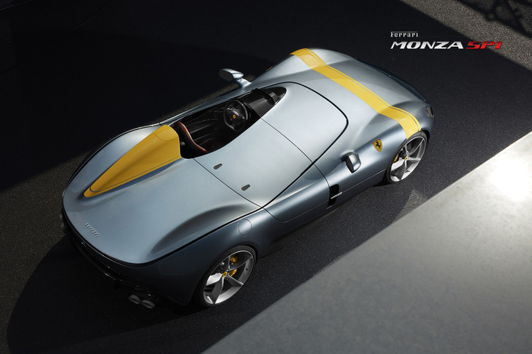 Salon de l’automobile de Paris, octobre 2018 : Ferrari dévoile les deux premiers modèles de la très exclusive série limitée « Icona » destinée à revisiter les voitures les plus emblématiques de son histoire : les Monza SP1 (monoplace) et SP2 (biplace), deux fabuleuses supercars inspirées des « barchettas » qui ont jadis fait la renommée de la marque au cheval cabré en compétition.