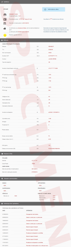 Si les informations accessibles sont de nature exclusivement administrative, elles permettent cependant de s’assurer de l’origine et de l’historique général du véhicule objet du rapport HistoVec.