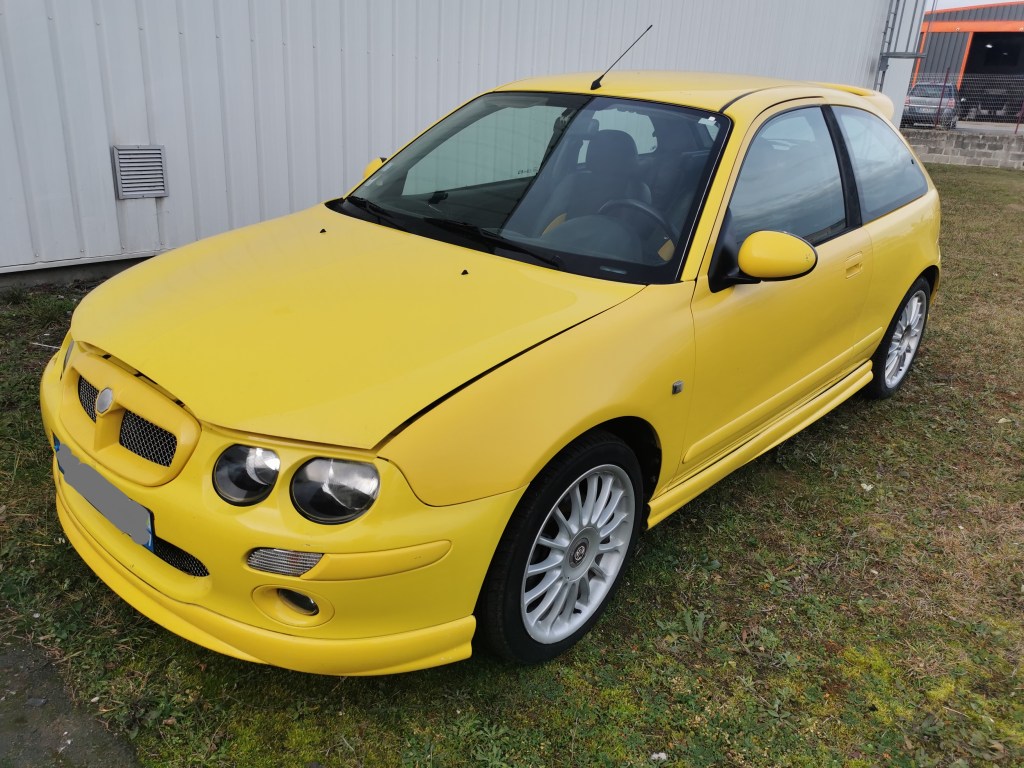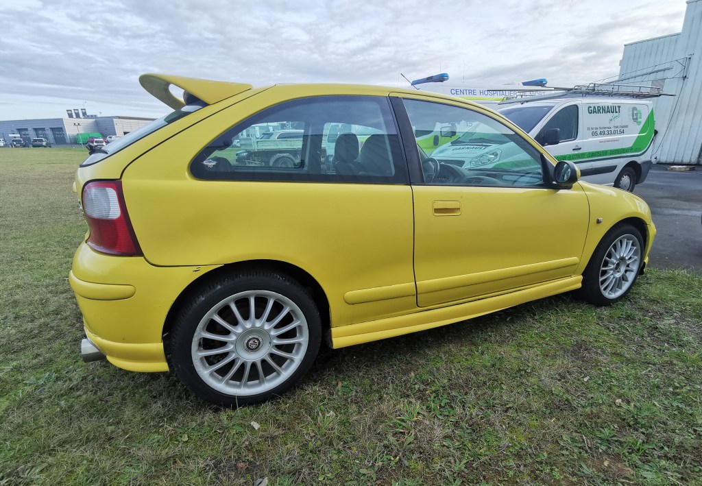 Une rencontre « sucrée »… Croisée par hasard le 23 décembre dernier, cette MG ZR 160 Mk1 est apparue bien seule, stockée capot entrouvert derrière un atelier de réparation automobile à Chauray près de Niort. Sa robe jaune vif « Trophy Yellow », patinée par les années, ne pouvait cependant pas passer inaperçue. Il faut dire que cette sportive exotique et colorée telle une sucrerie britannique, est peu répandue dans l’hexagone et ne manque pas d’intérêt.