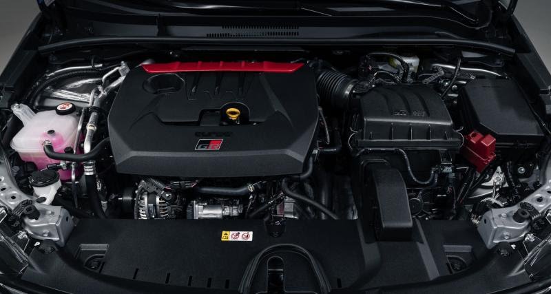 La GR Corolla emprunte le 3 cylindres 1.6 Turbo de la petite GR Yaris. Optimisé, il développe ici 304 ch à 6500 tr/min et 370 Nm de couple entre 3000 et 5550 tr/min. Un gain de 32 ch par rapport à la version japonaise de la citadine (272 ch et 370 Nm) et de 43 ch, outre 10 Nm comparé au modèle importé en Europe (261 ch et 360 Nm).