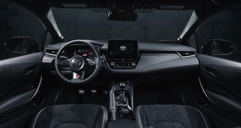 L’intérieur au traitement sportif ne devrait pas être des plus démonstratifs à l’instar de celui de la GR Yaris. Cette GR profitera tout de même notamment d’une belle sellerie badgée GR, de jolies surpiqûres, d’un afficheur numérique de 12,3 pouces et de la finition sérieuse de Toyota bien entendu.