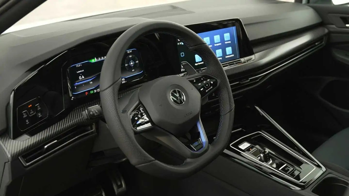 À l’intérieur, cette Golf R très spéciale sait recevoir avec sportivité. Il s’agit de la première Golf à bénéficier d’inserts en véritable carbone. Les Sièges en cuir Nappa ventilés, floqués du logo R, complètent une ambiance sportive raffinée à défaut d’être radicale, esprit Golf oblige !