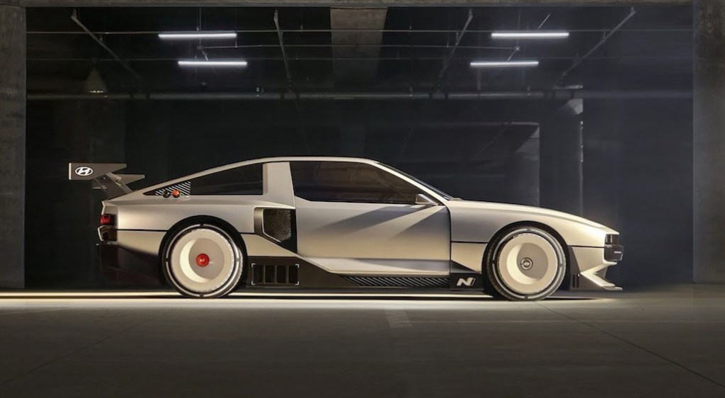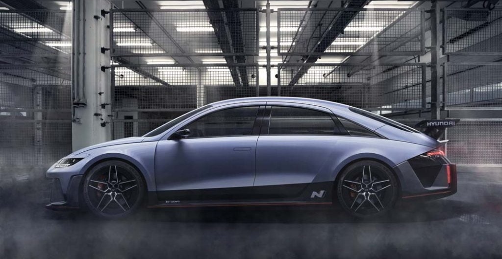 Cette dernière ne s’inspire pas du passé mais d’un futur modèle de la marque, la Ioniq 6 dont la sortie est prévue pour la fin de l’année. Elle a même été développée sur la base de cette dernière, laissant entrevoir la possibilité de voir un jour une Ioniq 6 N de série.