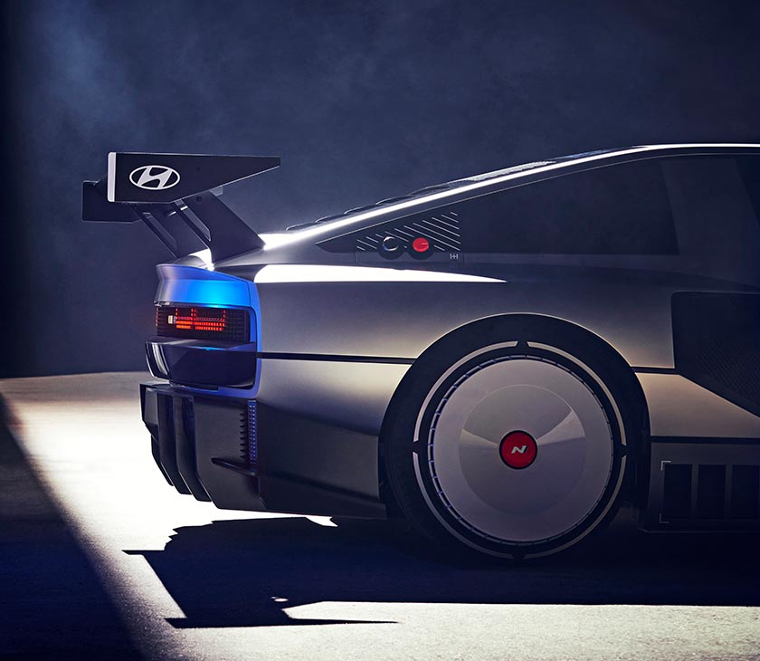 La N Vision 74 impressionne. Son design néo-futuriste est inspiré du concept Hyundai Pony Coupé de 1974, façonné par le carrossier Giorgetto Giugiaro. La N Vision 74 en reprend les codes et les remet au goût du jour de manière quelque peu exubérante, à l’image d’une DeLorean DMC-12 contemporaine tant l’auto paraît tout droit sortie du film « Retour vers le futur ».