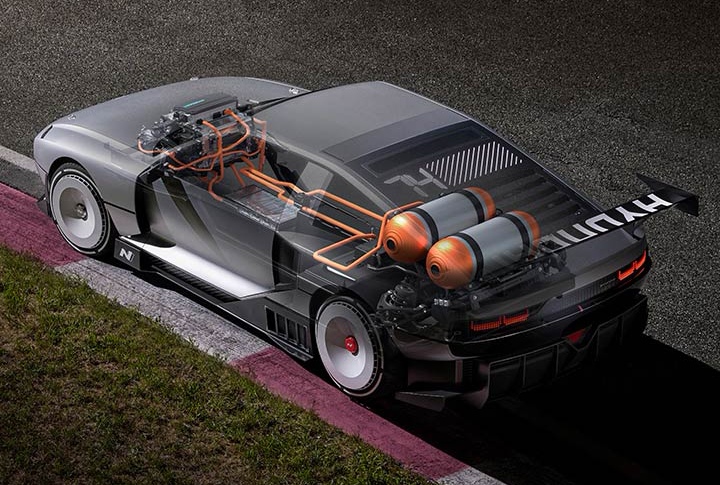 Sauf qu’avec ce prototype, Hyundai va encore plus loin pour aller sur le terrain de la haute performance. Les deux moteurs électriques placés à l’arrière développant au total plus de 500 kW (680 ch) et 900 Nm de couple sont alimentés par deux sources d’énergie différentes :