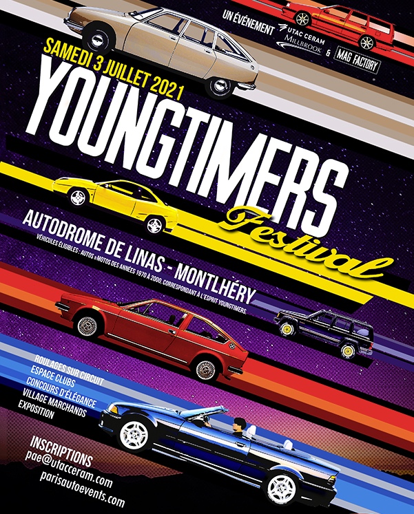 Le Youngtimers Festival a débuté en 2012 sous l’impulsion de François-Xavier Basse, fondateur et rédacteur en chef du magazine Youngtimers publié par la maison d’édition Mag Factory qu’il a également créée. L’idée est simple : réunir les amoureux des « jeunes anciennes » dans un lieu mythique, l’autodrome de Linas Monthléry situé dans l’Essonne et géré par l’UTAC.