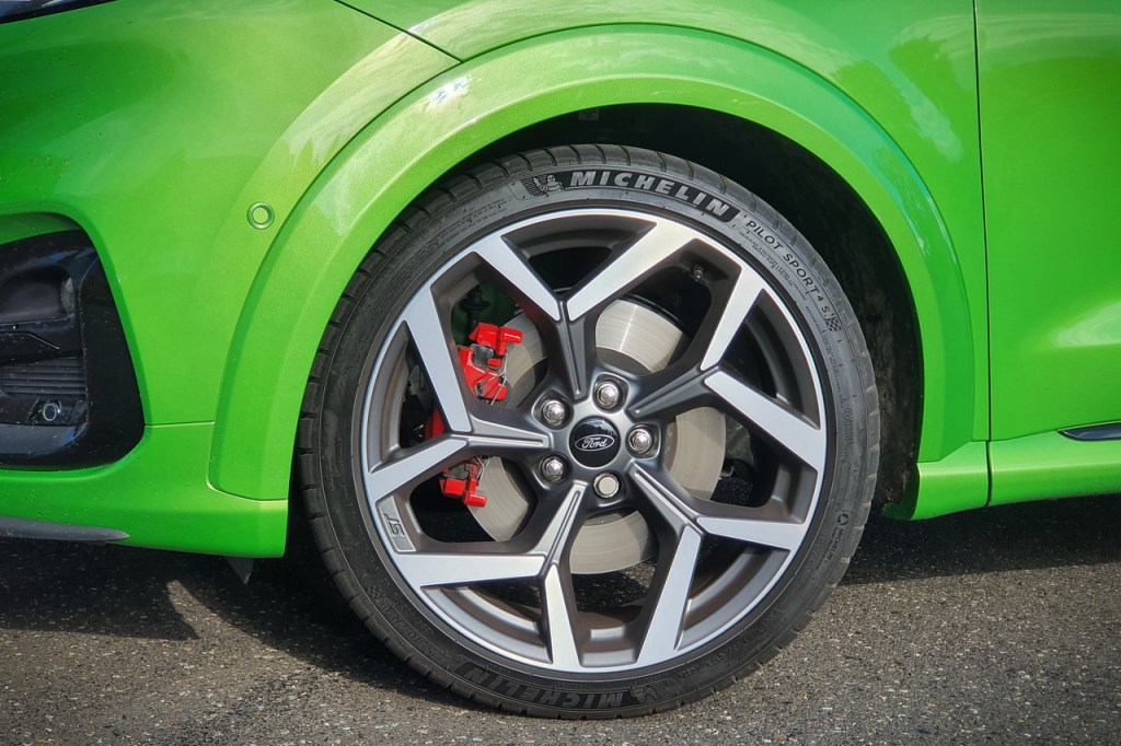 Les liaisons au sol, les amortisseurs bitubes et les gros freins ont été empruntés à la Fiesta ST. Ford Performance y a ajouté un essieu de torsion arrière plus rigide et des barres anti roulis surdimensionnées pour compenser un centre de gravité haut perché pour une sportive.