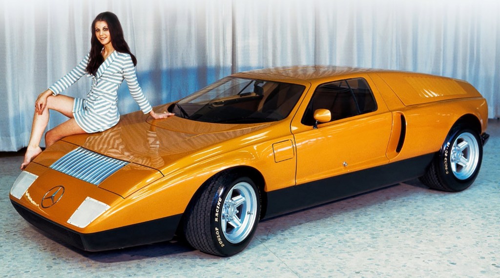 Le premier concept de la lignée C 111 doit son dessin au styliste italien Bruno Sacco. Ses lignes à la fois tendues, élégantes et pointues, ses phares pop-up, ses portes à ouverture en élytre ainsi que son pavillon ultra bas lui confèrent une allure de supercar prête à faire parler la poudre. Sa carrosserie en plastique renforcé de fibre de verre est vissée directement sur le châssis porteur en tôle, dans un souci de rigidité mais aussi et surtout d’économie de poids (1100 kg).