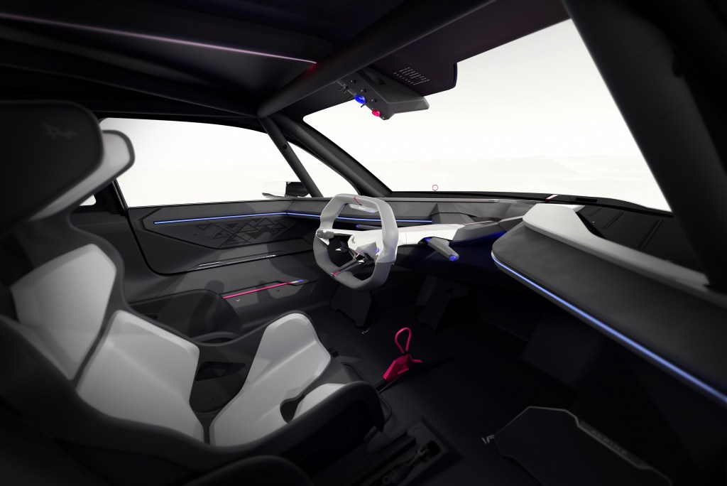 L’intérieur du concept, dépouillé et très futuriste sera lui aussi rationalisé pour répondre aux impératifs de production industrielle et aux normes de sécurité en vigueur. Les renforts tubulaires laisseront aussi leur place à des sièges pour accueillir au moins deux passagers à l’arrière.