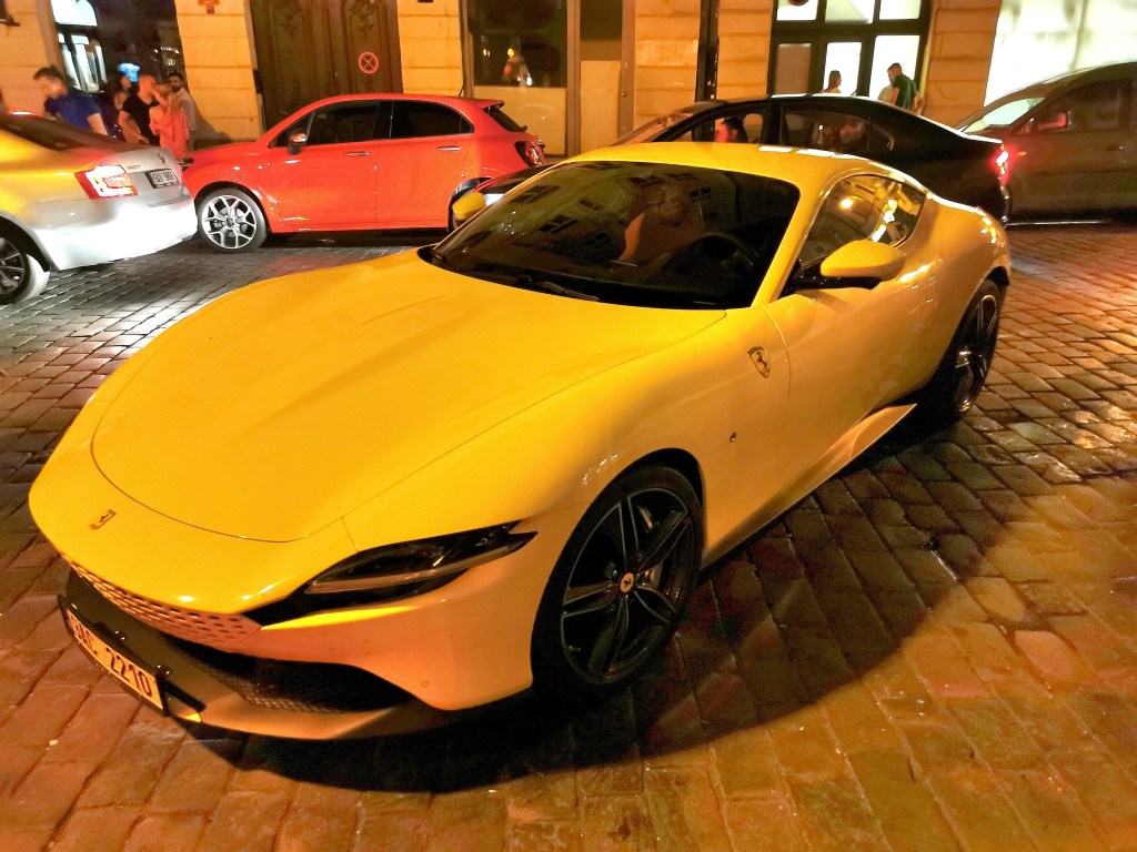 Vous aimez les coupés performants et racés ? Cette Ferrari Roma animée par un fabuleux V8 3.9 de 620 ch est là pour illuminer la nuit pragoise avec sa livrée Giallo Modena.