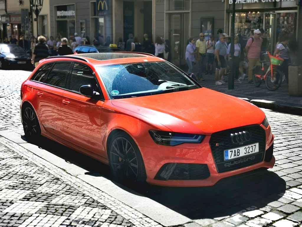 L’Audi RS6 Avant est l’un des breaks les plus performants de la planète. Avec son V8 4.0 de 600 ch et son look sportif ostentatoire, elle impressionne toujours, que ce soit sur la route ou même simplement à l’arrêt. Celle-ci fait son show en plein centre ville, ne laissant aucun passant indifférent.