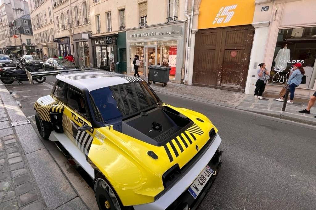 La R5 Turbo 3E a été révélée fin 2022, année des 50 ans de la mythique Renault 5. La fiche technique de cet engin électrique du troisième type signé Renault est audacieuse, à l’image de celle de la R5 Turbo dont elle est l’héritière : 380 ch (280 kW), 700 Nm de couple, 980 kg (hors batterie de 42 kWh), le tout construit autour d’un châssis tubulaire, avec une appétence particulière pour le drift, grâce à une propulsion diabolique et un frein à main façon rallye.