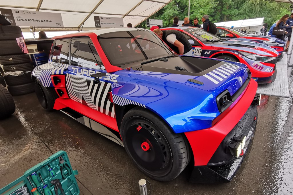 La deuxième configuration de la R5 Turbo 3E, présentée le 14 juillet 2023 au célèbre Festival of Speed de Goodwood, adoptait un patriotisme tricolore de circonstance.